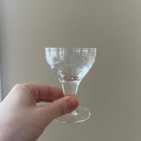 Glassene har et mønster med vertikale riller og en dekorativ fot. Egnet til servering av vin.