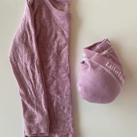 To gensere pent brukt størrelse 110, to ull strømpebukser 110/116. Den rosa har en del slitasje de bilde, tenker derfor at den følger med gratis. Den beige har bare litt slitasje på storetåområdet.