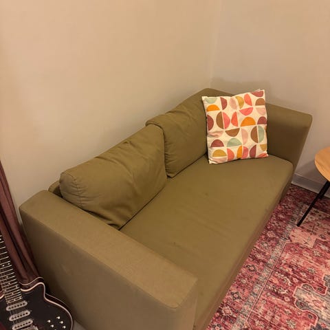 I underkant av ett år gammel Skönabäck sofa fra IKEA selges. Sofaen kan brukes som 2-seter og slås ut til 3-seter/sovesofa som vist på bildet fra IKEA.