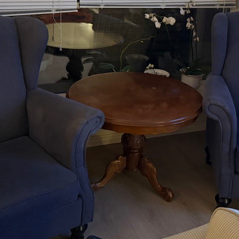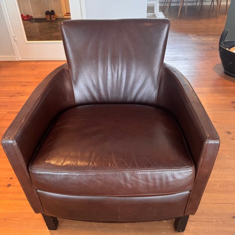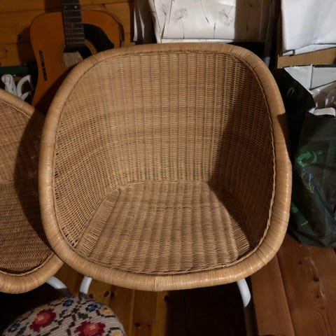 Brukt, merker etter katt på stolsider men kan fjernes med nuppefjerner. Disse har kun stått i kjeller og er ellers veldig fine. Selger begge for 500 kr. Nydelig blåfarge. Dette er designermøbler.