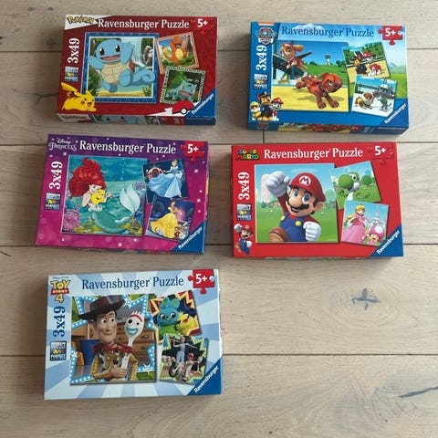Spillpakke med diverse brettspill og puslespill 200kr alt sammen