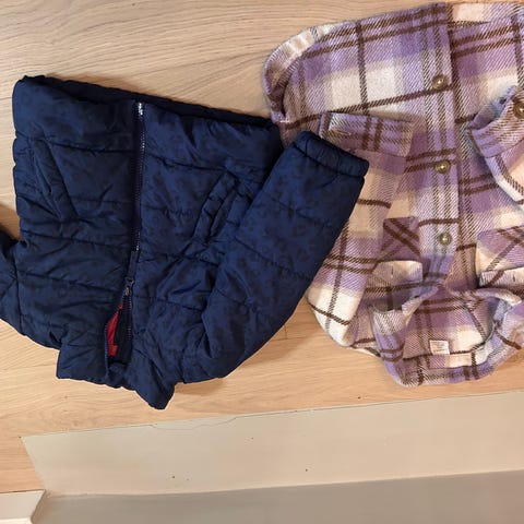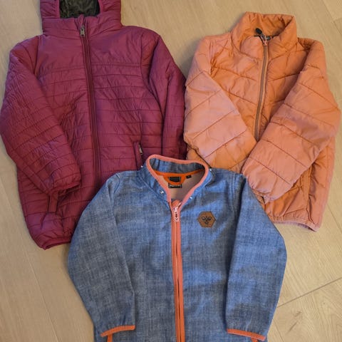 3 jakker i str 98. Vest, vindfleecejakke, dongerijakke.