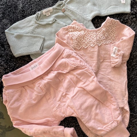 Klespakke fra newbie til jente i str 68, uten synlige anmerkninger.