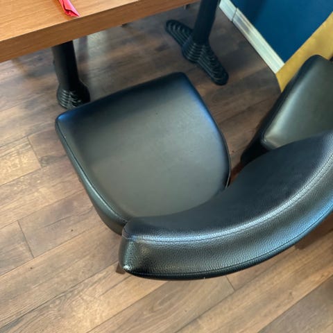 Selger solide og behagelige spisebordstoler som har vært brukt i restaurant i ca. 7–8 år. Stolene er pent brukt og godt vedlikeholdt, med normal bruksslitasje.