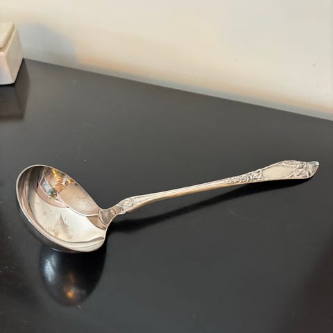 Massiv og tung suppeøse med gravering. 30 cm lang. veier 103 g