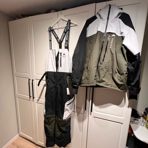 Skibukse og jakke Montec Fawk, pent brukt, str L. Kul og synlig farge i bakken! Lett foret, perfekt til både kalde og mildere dager, det er bare å justerw med lag.