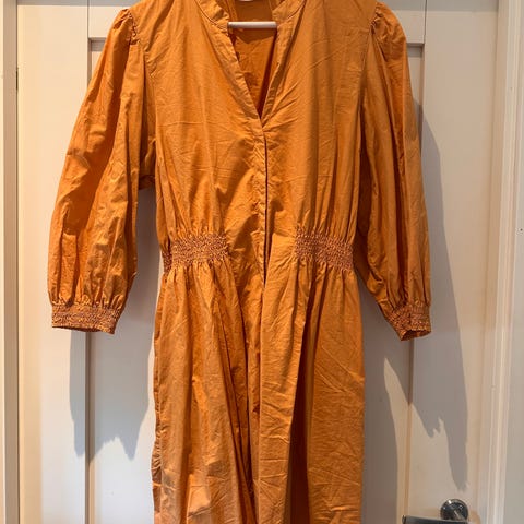 Selger en pen kjole til mange anledninger,små rosa blomster,den ble for liten i str så den er ikke vært i bruk.