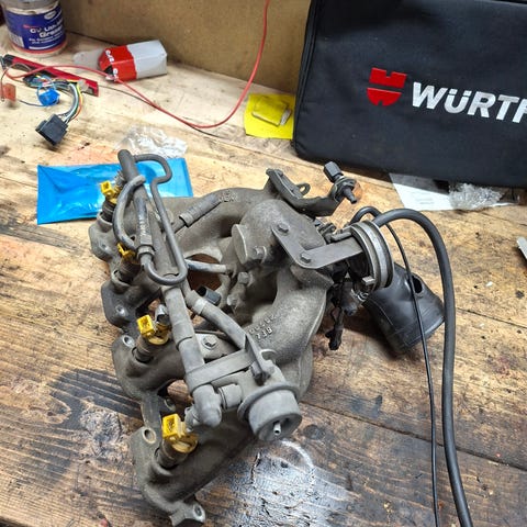 Komplett innsug til Volvo B230A selges. Ikke så lett å få tak i lenger, og kan være greit å sikre seg hvis man for eksempel tenker på ombygging fra lunefull forgasser på B230K til en enkel men pålitelig Stromberg eller Pierburg. Selges samlet inkludert forgasserwire.