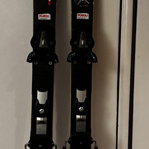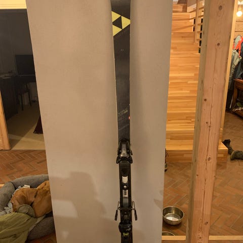 Selger et par Fischer alpinski (198 cm) med Salomon SNS-bindinger.