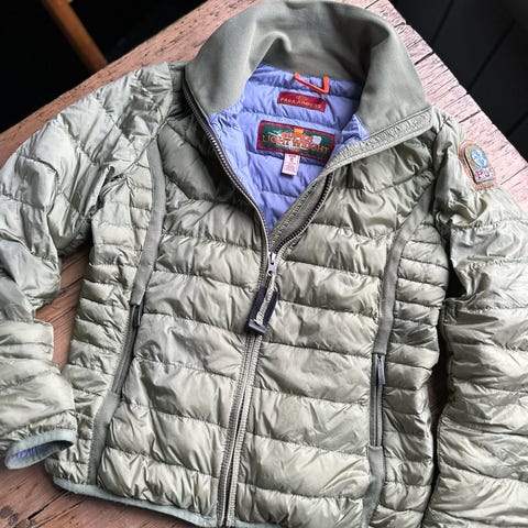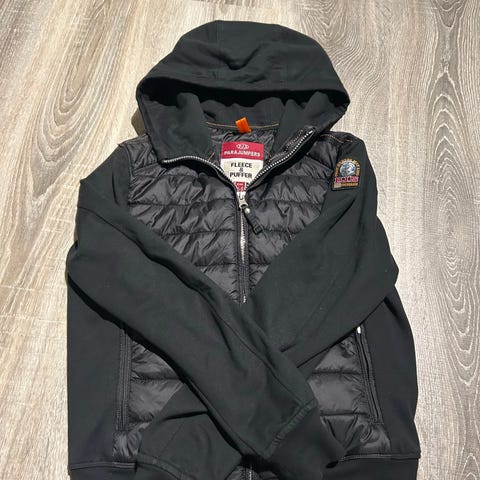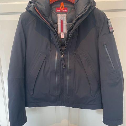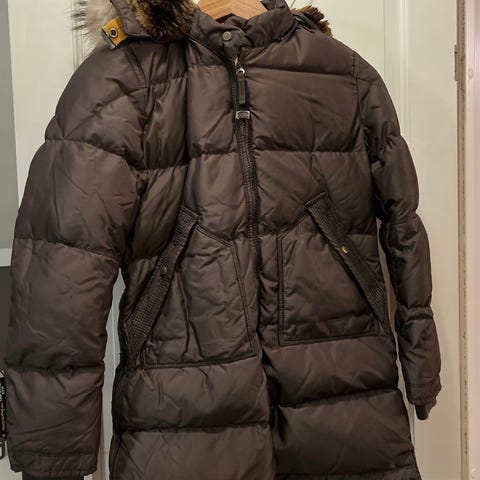 Parajumpers dunjakke i størrelse 152 for jente. Jakken er svart og laget med dun som materiale. Den har hette med pelskant og er designet for barn. Merket på armen er borte. Dyr og røykfritt hjem