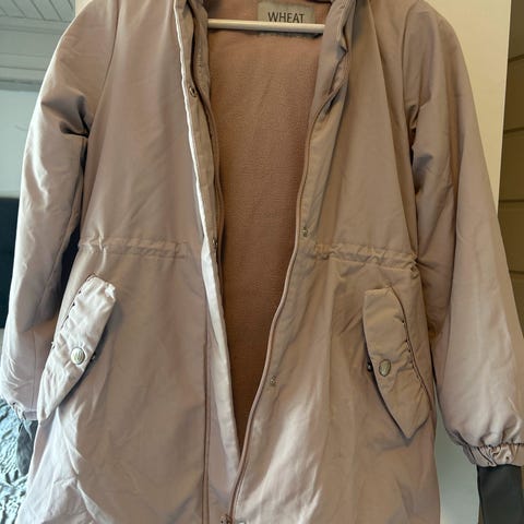 Wheat dunjakke i størrelse 140 for jente. Jakken er grønn og laget med dun som isolasjonsmateriale. Den har hette og lukkes med glidelås. Jakken er egnet for kalde værforhold.