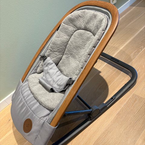 Selger en vippestol fra maxi-cosi. Stolen er fullt funksjonibel og har et elegant utseende. Kan lage den om til en fast stol og reguleres opp og ned. Innehar også et nyfødt innlegg. Er lett å ta med seg og kan legges sammen slik at den ikke tar så mye plass. Selges slik den er. Trekkene er avtagbare og kan vaskes.