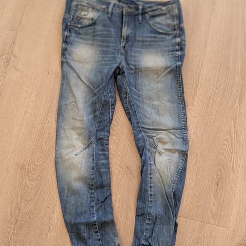 Denimbukse i blå farge, størrelse 32 for kvinner og menn, med midjevidde W29. L32 Laget av denimmateriale.
