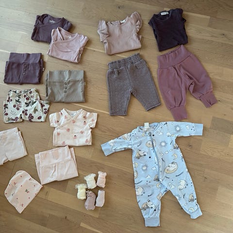Bodyene er str 62 og 68. Vil si de er litt små i størrelsen.