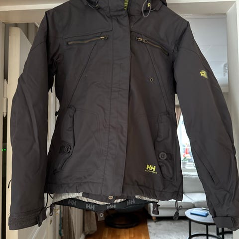 Tøff ROXY skijakke for alpint eller snowboard. (Fransk merke). Jakken er meget pent brukt og har ingen bruksmerker. Unisex . Mange fine detaljer. Farge grå med grønne detaljer. Avtagbar hette med snøring. Deilig fleece i halsen. Jakken har egen lomme for å legge skibriller og egen lomme for mobil, heiskort etc.