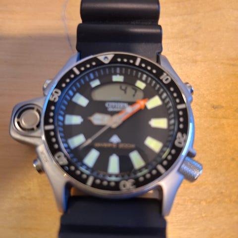 Citizen Promaster dykkerklokke med svart urskive og gummirem. Klokken har tydelige markeringer for dykking og er utformet for bruk under vann. Leveres med originalt etui. Ubrukt