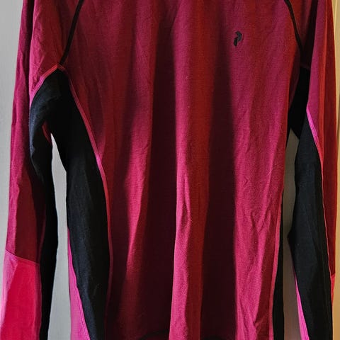 Varm og solid rød vinterjakke fra Peak Performance. Lang modell med hette og mykt innerfôr.