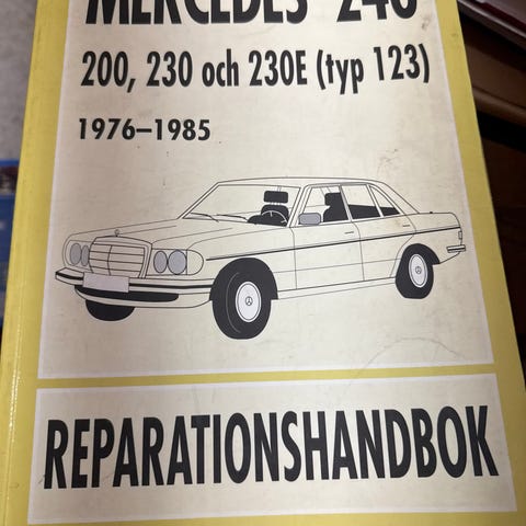 Mercedes Type 123 Reparasjonshåndbok for bensinmotorer 102 & 115 (200, 230 og 230E) fra 1976 til 1985.