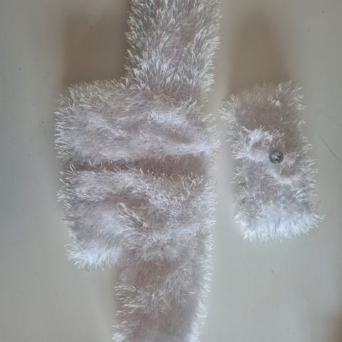 Brukt da poden var 2 og 3 år. Den er ganske tykk på forstykket. Strikket i bomullsgarn.