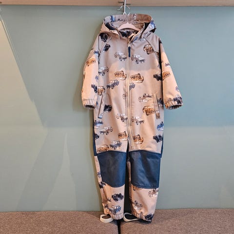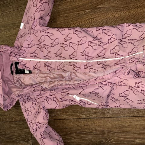 Vårdress/ høstdress / softshelldress / parkdress / utedress fra Name it I størrelse 92. Blomstermønster. Ingen flekker eller hull som jeg kan se. Hempen er delvis løsnet. Veldig pent brukt softshell dress med glidlås og hette.