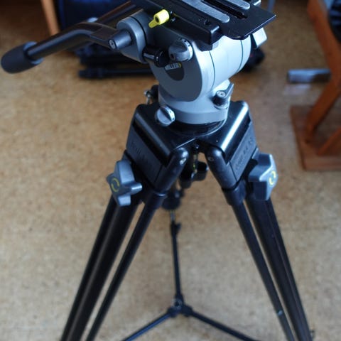 Selges med Manfrotto 701HDV fluid‑videohode.
