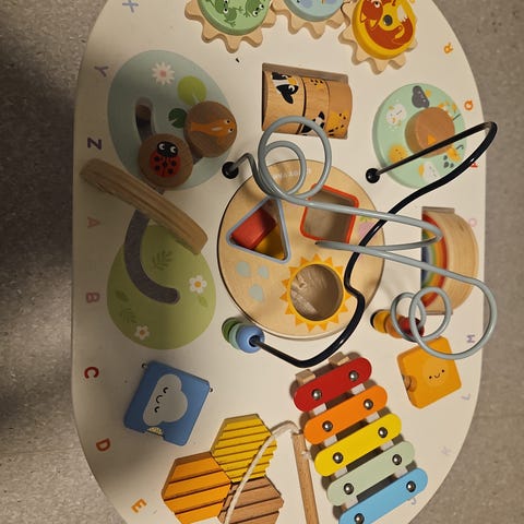 Kvalitetsleker i tre for babyer / små barn. Bankebrett noe slitt, ellers alt strøkent.