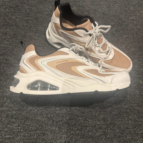Usædvanlige skechers, som jeg købte i Kroatia i specialbutik. De er blå og sølv med "glimmer". Desværre er de lidt for store til mig, så dermed har jeg kun brugt dem 1-2 gange.