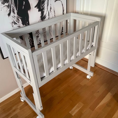 Praktisk, romslig og stabil bedside crib. Høyden kan enkelt justeres. Vi har hatt to ulike senger, og denne er vår favoritt!