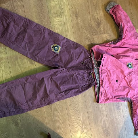 Kul vintage skidress fra 80-tallet. Str S 36 Lett vattert, men verken vann- el vindtett tror jeg. Morsom og ha på evt afterski😀Det er noen flekker bak på rompa og nedover på beina( se de tre siste bildene) men den er ellers hel uten hull eller rifter. Kan hentes i Moss eller sendes, kjøper står for frakt. Se gjerne mine andre annonser ☺️