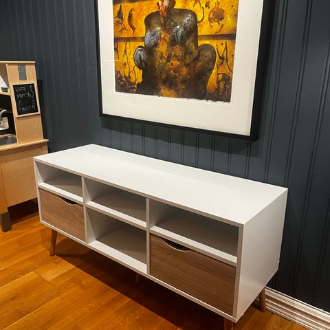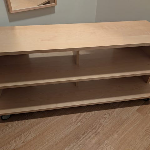 Pent brukt tv-benk med låsbare hjul selges kr 250,-