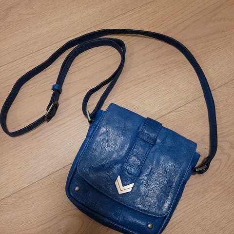 Mykt sort kalveskinn med plass til litt oppi (tlf, lommebok etc). Kan gjemme skulderreima oppi vesk og brukes som clutch