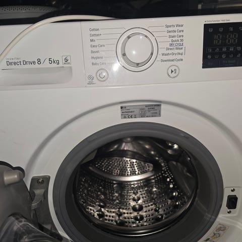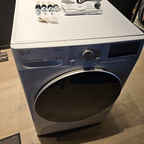 MERK: maskinen har en lekkasje. I et kammer bak lofilteret er det en sprekk der det lekker. (Se bilde) Maskinen er kjøpt i april 2020 og er i god stand ellers. Kan koples til wifi og styres via LG appen.