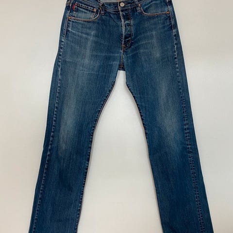 Levi's blå denim jeans for herre i størrelse L med midjevidde W34. Laget av slitesterkt denimmateriale.