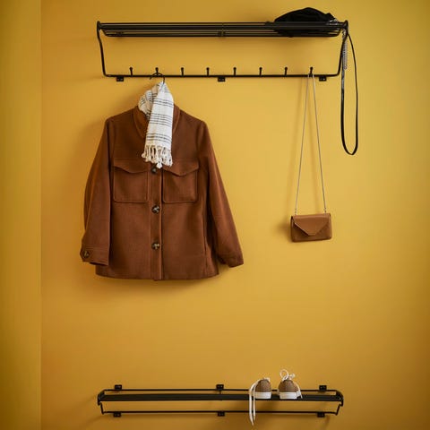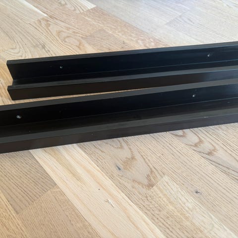 Skohylle designet av Gustav Rosen. Ser ut som svevende fottrinn. Laget i pulverlakkert metall, produsert i Sverige.