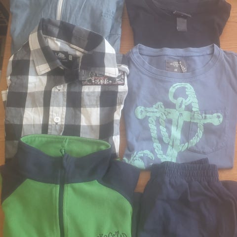 Pent brukte finklær til gutt selges. Klærne er fra Zara, Kappahl og H&M i størrelsene 122 og 128. Ingen hull, e.l. Klespakken består av to bukser og to skjorter. Selges samlet.