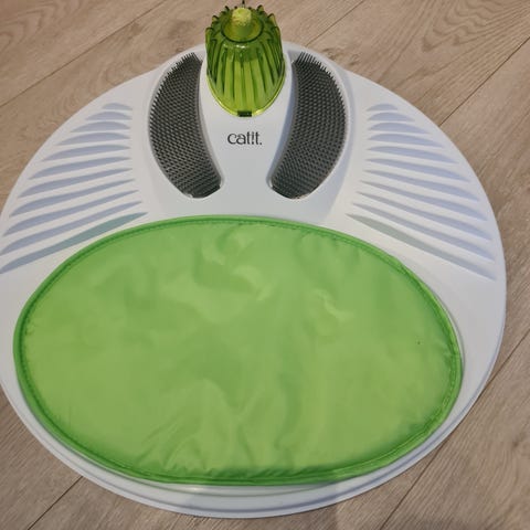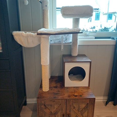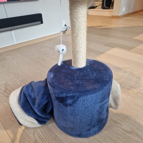 Kattestativ som i all hovedsak har blitt brukt som stumtjener og støvsamler hos oss. Antagelig fordi det rett og slett er for lite for katten vår. (Stor, kastrert skogskatt)