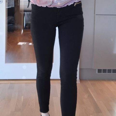 Innhold: dongeri bukse-34,rosa/ hvitt skjørt -XS’