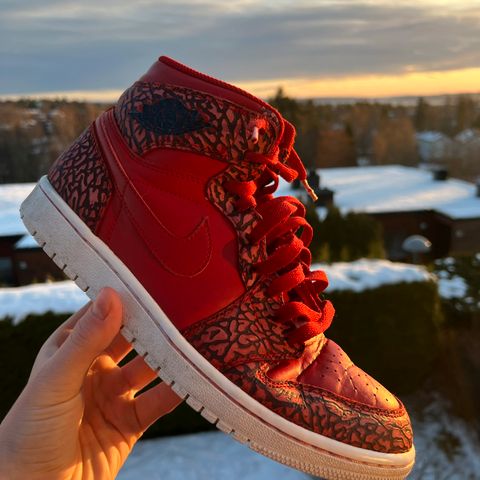 Selger et par NIKE AIR JORDAN 1 RETRO MID CHICAGO i klassiske svart, hvit og røde farger. Skoene er pent brukt og i god stand(se bilder), uten store skader eller slitasje. Komfortable og stilrene sneakers som passer både til hverdagsbruk og streetwear.