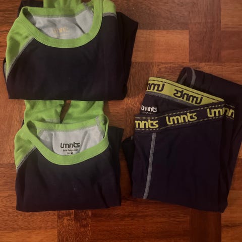 2 Longs med litt ull-trenings tights -ny t-shorts-ulltrøye fra janus. Str 10 år. Grå hettejakke