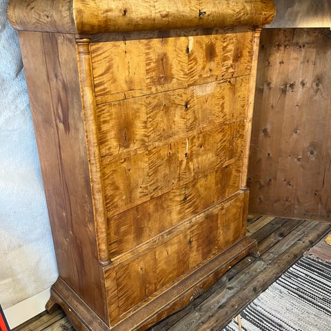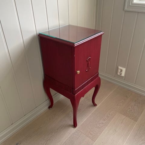 Mål: 72 cm høy, 45 cm dyp og 77 cm bred.