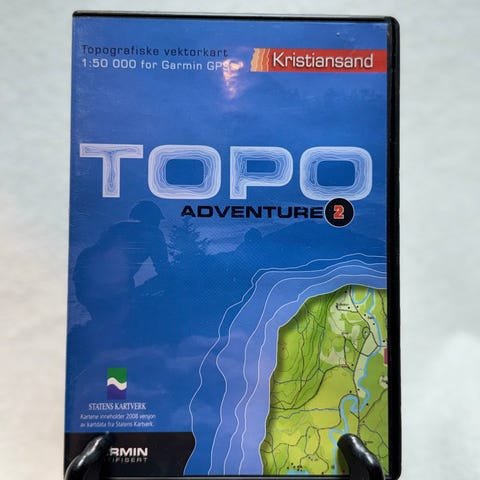 Topo Adventure 1 kart over Stavanger, kompatibelt med Garmin GPS-enheter. Kartet dekker området rundt Stavanger med detaljerte topografiske data, inkludert terreng, stier og andre geografiske funksjoner. Produktet leveres på CD og er beregnet for bruk i navigasjon og friluftsliv.