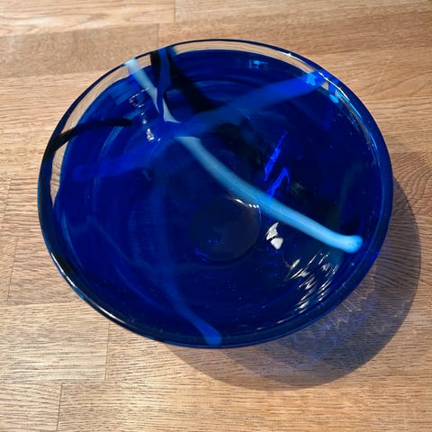 Hadeland Glassverk dekorasjonsfat blått glass