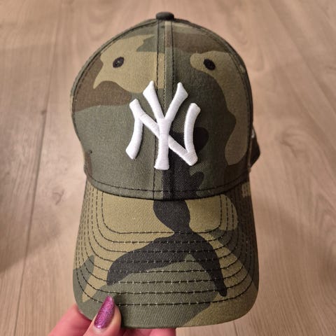 Lite brukt baseball cap i camo med lilla detaljer.