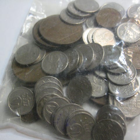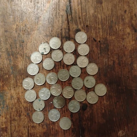 Har samlet 10-ører på en flaske, der planen var å lage en lampe😀, det blir det ikke noe av.