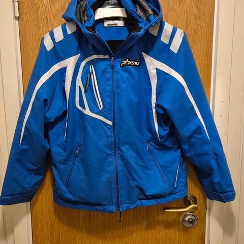 Skijakke fra 8848 Altitude i marineblå. Str. 140/10 år. Fleece i hals, nakke og rygg. Lomme til skikort på armen, samt to lommer på brystet med glidelås og en lomme på innsiden. Hetta mangler og litt slitt på ene albuen. Dette kan lett fikses.