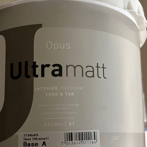 Selger en helt ny Opus veggmaling 10L i fargen «kokos», lys beige. Malingen er kun oppbevart innendørs i romtemperatur.