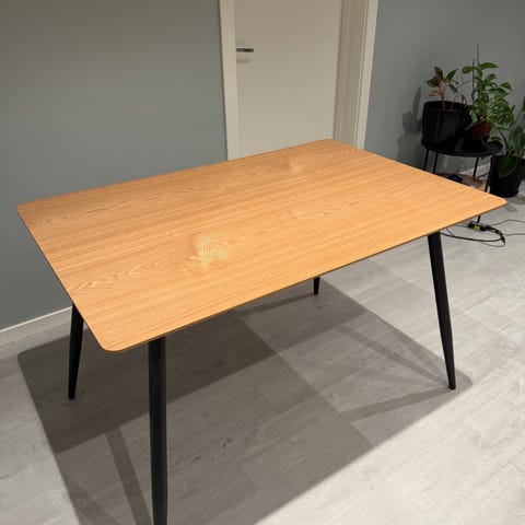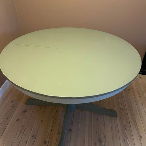 Bord utvidet ti 120x70 cm med 4 stoler rundt.