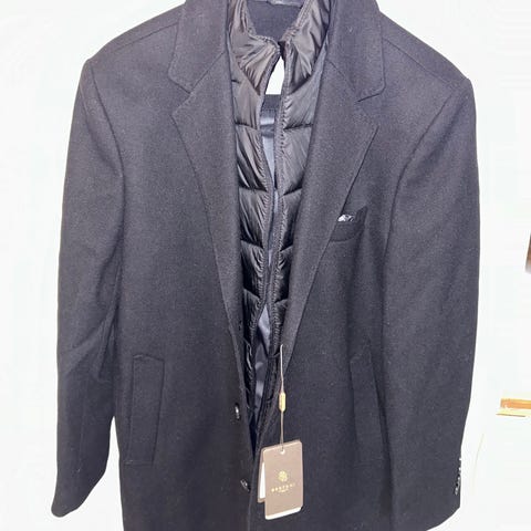 Stilig frakk fra Bertoni i svart. Størrelse 50 som tilsvarer medium til large. Frakken er kun brukt noen få ganger og har ingen slitasje eller merker / flekker.