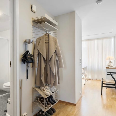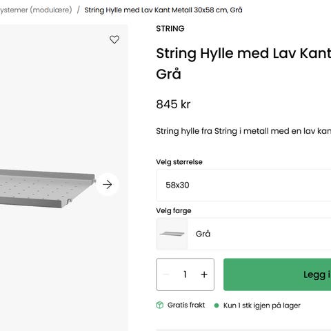 String metallhylle er laget av lakkert metall og har en perforert overflate som gjør den spesielt egnet til utendørsbruk eller til oppbevaring av kjøkkenutstyr. De perforerte hyllene er det optimale utgangspunktet for å være kreativ med tilbehøret vårt. Legg til kroker, stenger eller knagger for å designe din egen unike hylle.