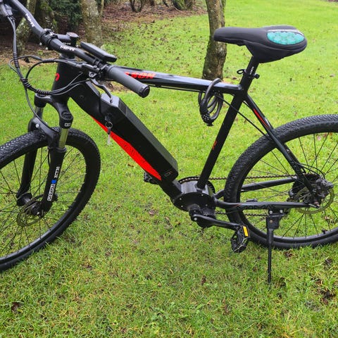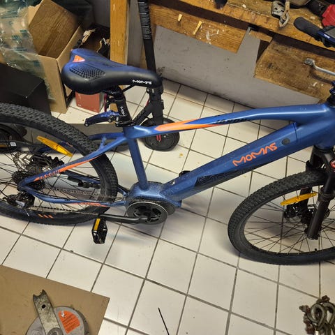 Sykkelen har noen skrape merker på venstre side som er ifra når den har kveltret, pågrunn av dårlig støtte men det er fikset